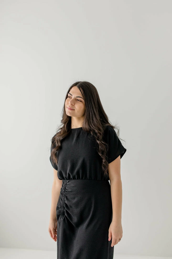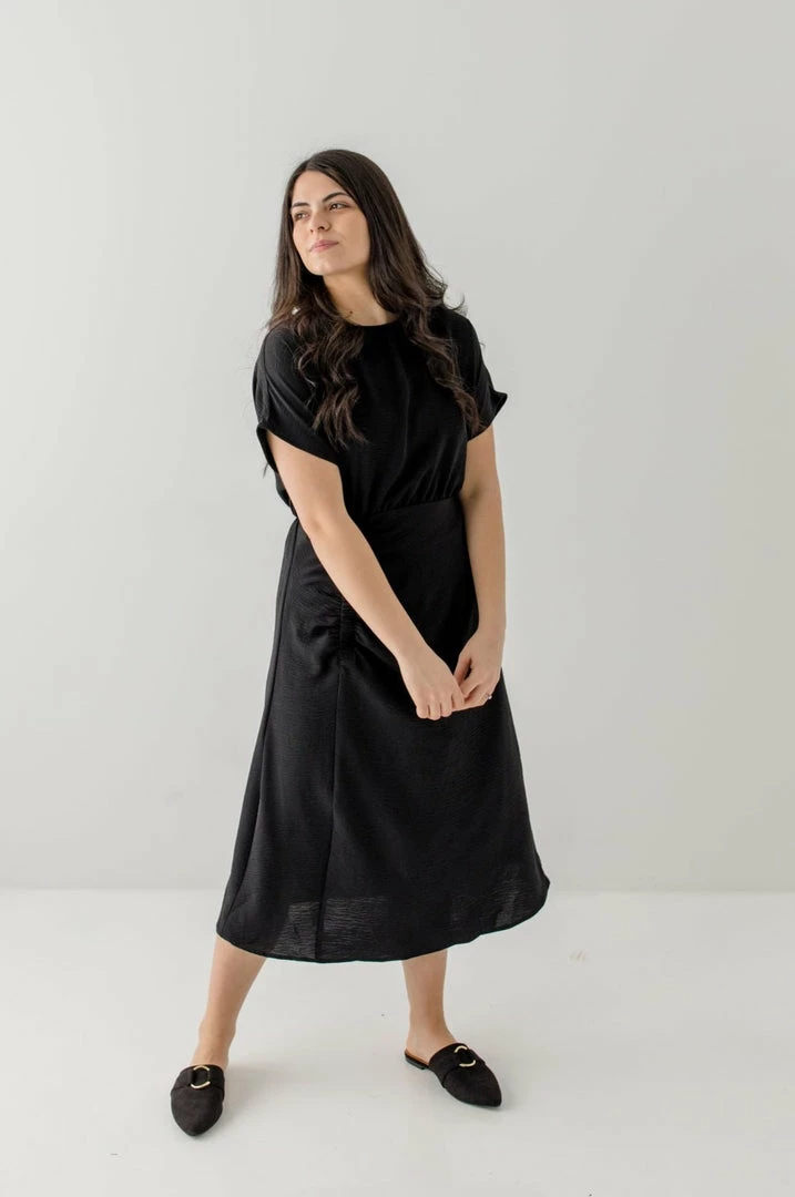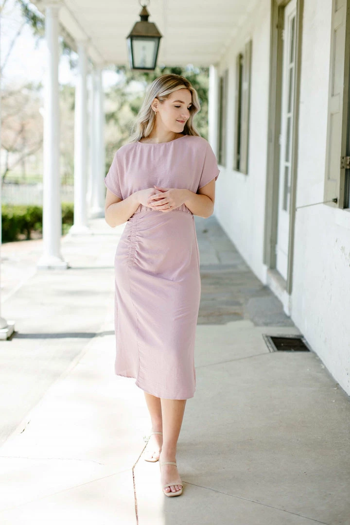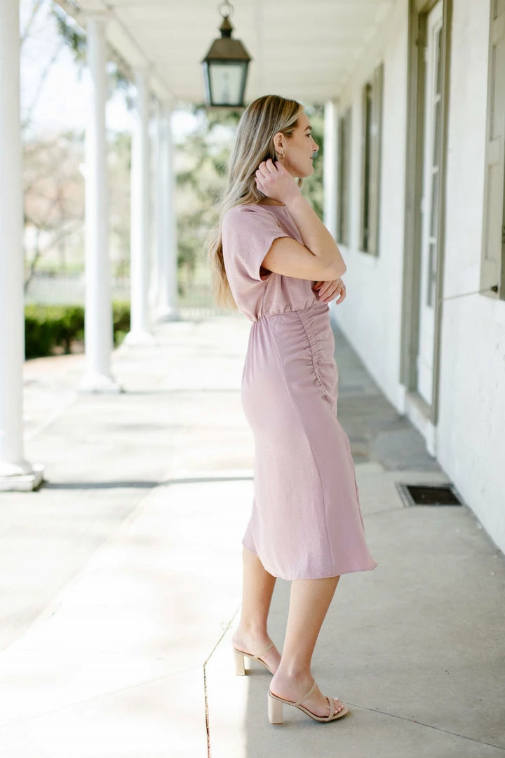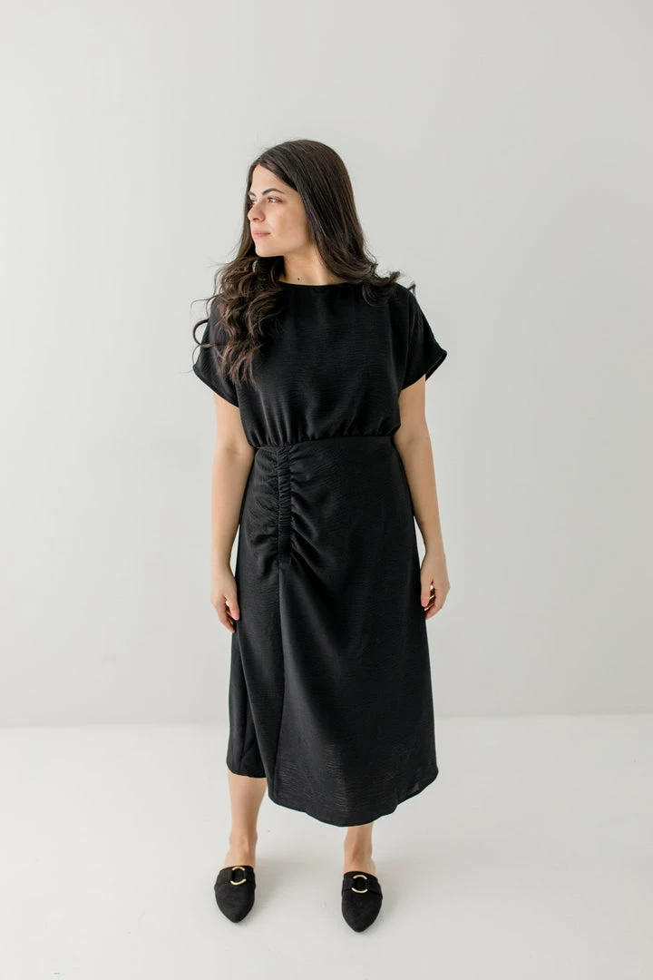 Every woman needs a classic little dress, and the Cruz Dress is the perfect fit! A crew neckline and midi length keep the Cruz a modest pick while shirring detail and gathered waist create a flattering silhouette. Style with block heels for a wedding guest outfit or with woven sandals for an elevated casual look!