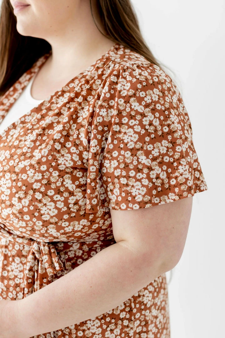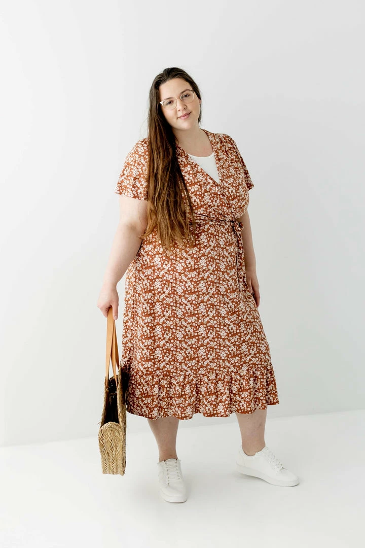 Put a spring in your step with the Corinne Faux Wrap Dress! This chic floral wrap-style dress features a semi-stretch fabric for easy movement, plus a v-neckline, flutter sleeves and belt for a feminine fit. A modest midi length creates a flowy and laid-back look, while a flare hem adds something special. Style the Corinne with a straw bag and sandals for a day with friends!