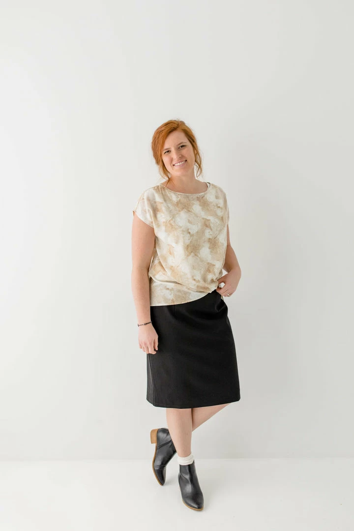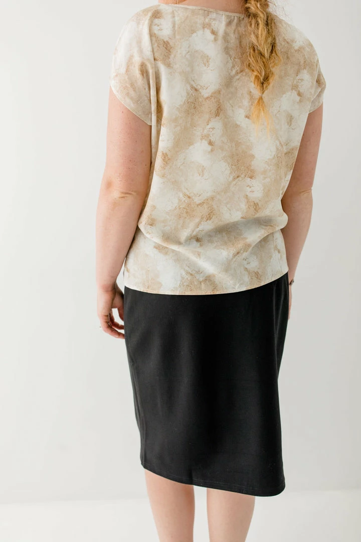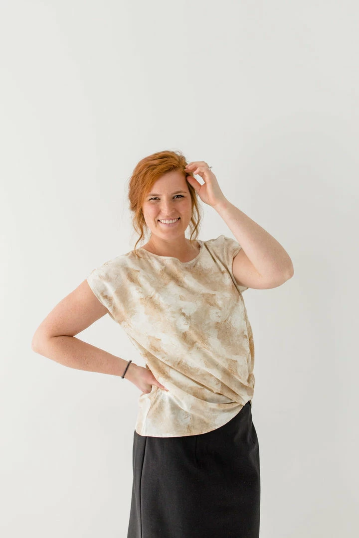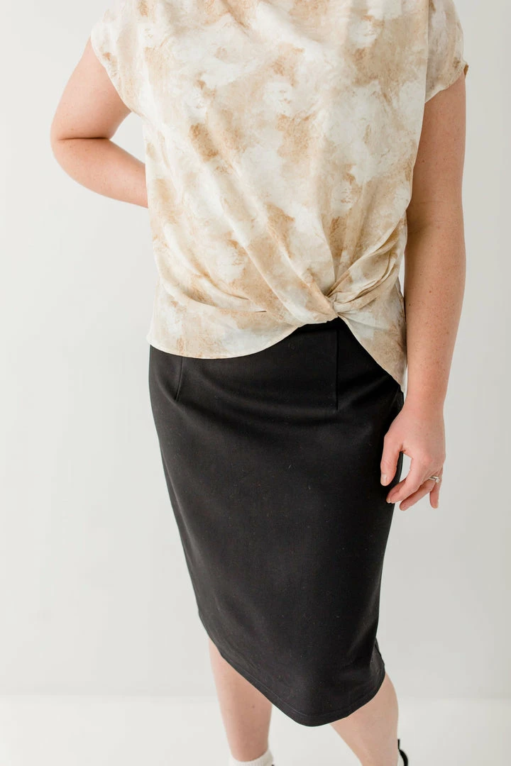 Fresh and versatile, the Opal top is here to add a fun twist to your look! This little gem features short cap sleeves, a crew neckline and twist front detail at the hem. Perfect for everything from work to a dinner date, the Opal is a must have piece for all seasons. Pair with a classic black skirt and flats for easy simplicity or throw on a denim jacket and tiered skirt for something different!