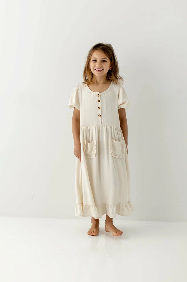 Freshen up her spring style with the Avia Dress! Cut in a loose silhouette, this girls’ pullover dress is made from soft fabric that lets her float through the day in airy comfort. The puff sleeves and button down front add fun to the look, while the modest length keeps her covered as she plays. A perfect pairing for everything from sandals to sneakers, the Avia dress is a dream come true!