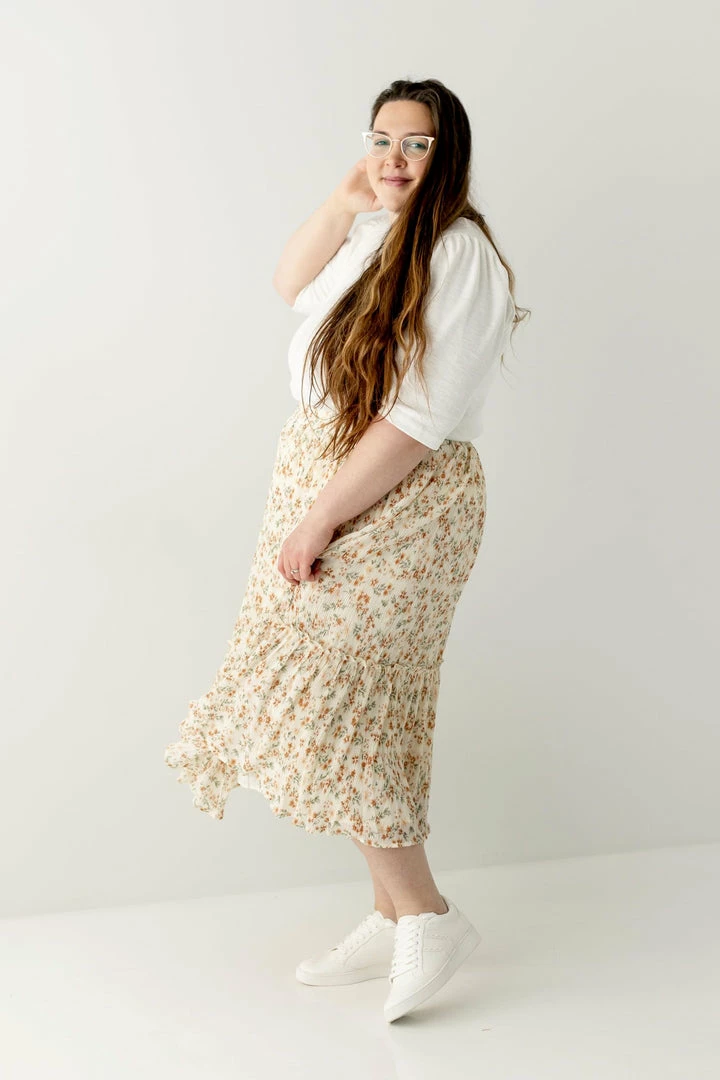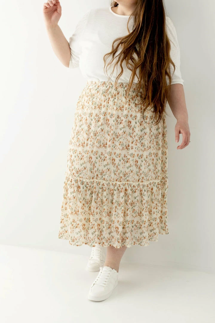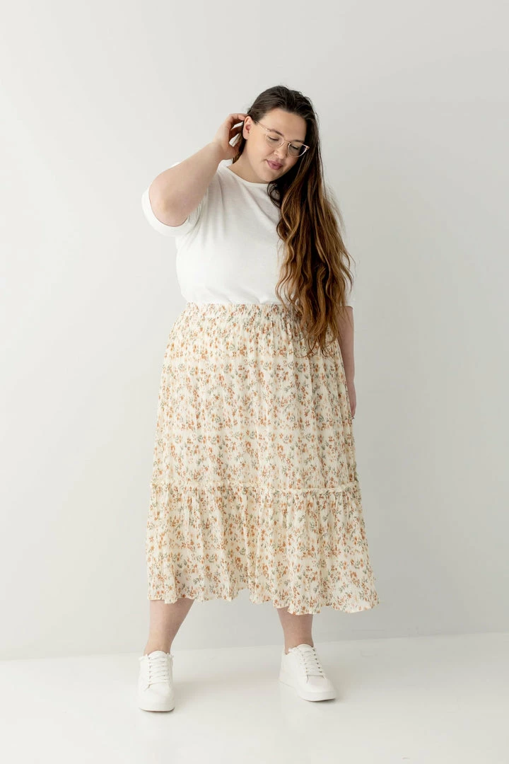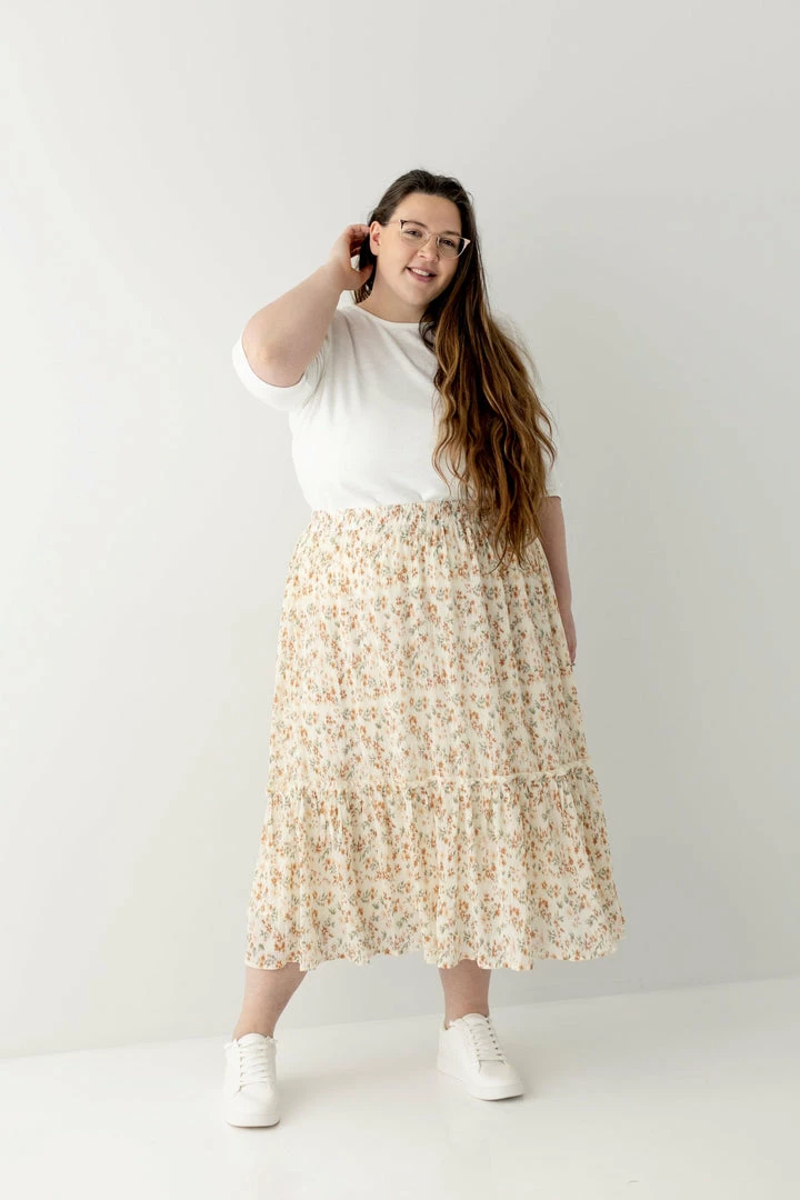 Perfect for a summer picnic or Sunday morning, the Elisa Midi Skirt is versatile enough for any occasion! Constructed from lightweight material for a comfortable fit that moves with you, this tiered skirt features a textured floral pattern to compliment any simple top. An elastic waistband and inside lining keeps you comfortable as you go throughout your day. Pair with a basic tee and sandals for a cute summer look!
