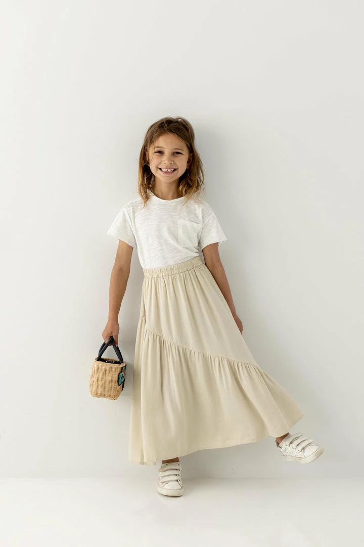 A modern twist on the classic simple skirt, the Winnie is perfect for adding fun to your girls’ wardrobe! The elastic waist-band is ensures the perfect comfy fit which makes it great for school or weekend wear. Style the Winnie with a simple tee and sneakers and you’re out the door!