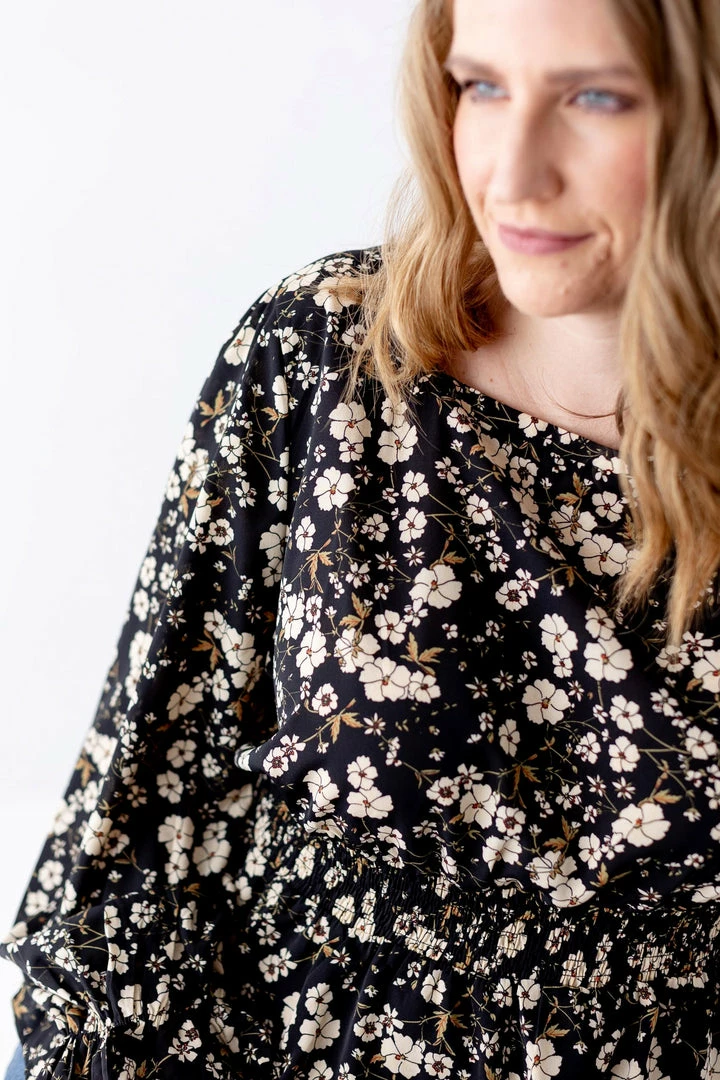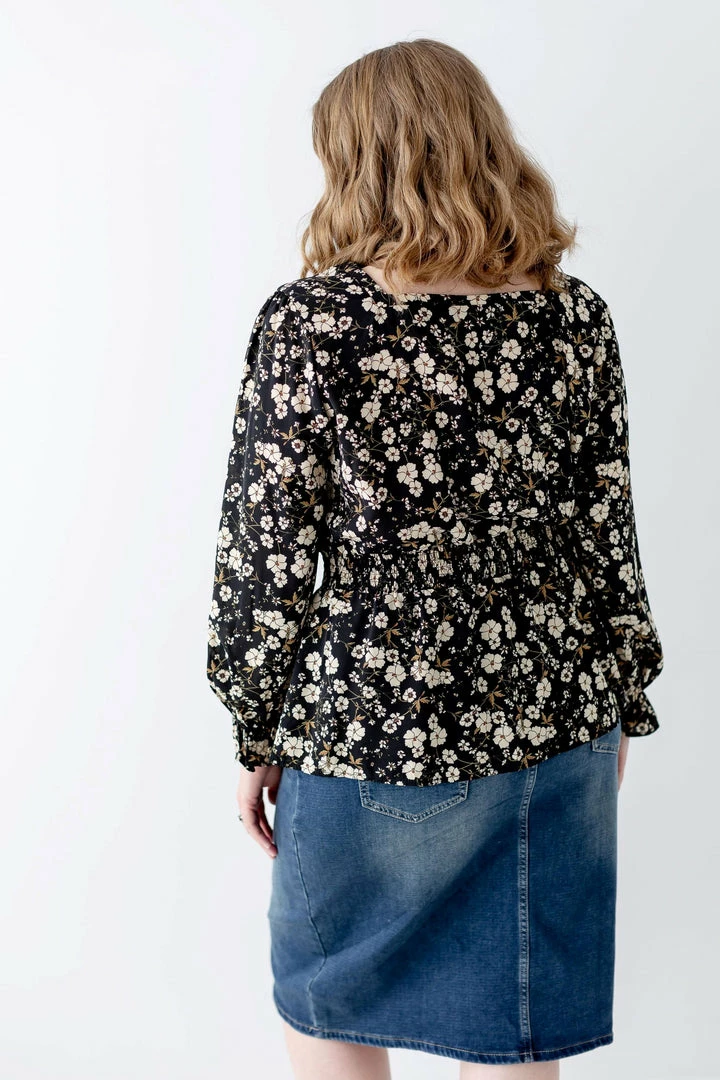Did someone say moody florals?! The Eileen top is here to make all your elegant floral dreams come true! Featuring a dreamy golden and black floral pattern, and modern square neckline… this top is sure to be a favorite piece. Pair with any denim and ankle boots for a stylish ensemble!