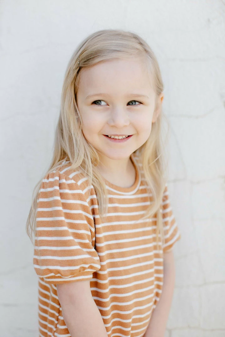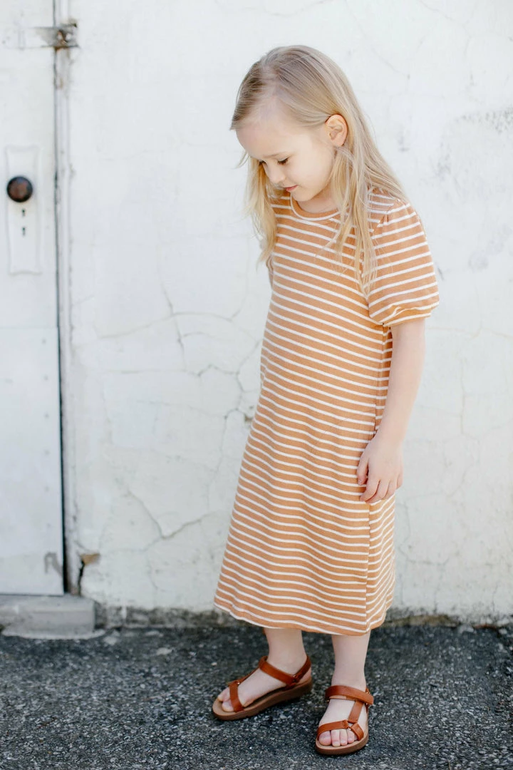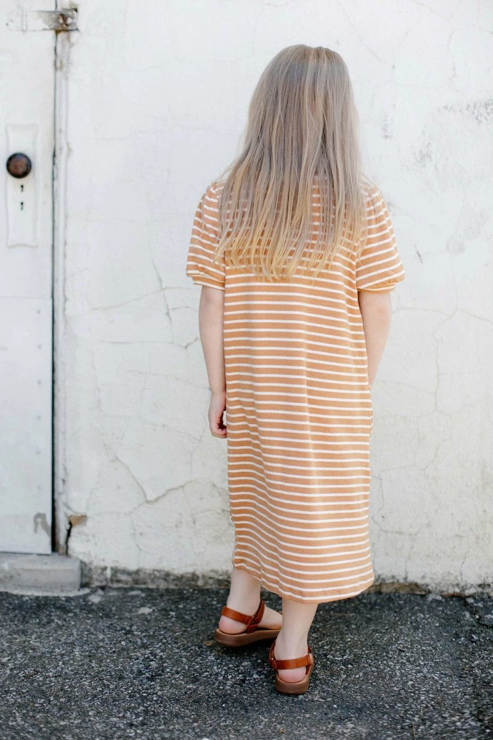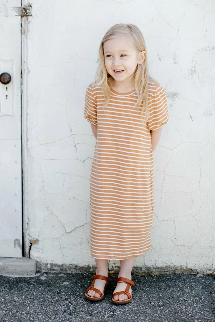 Make her everyday dressing more fun with the Essie Girl Dress! This short-sleeve dress constructed from soft knit fabric makes a comfortable and effortless summer outfit. Featuring a basic crewneck, striped print and easy pullover style: the casual Essie Dress is perfect for everything from school to Sunday morning. Pair the Essie Dress with sandals, slip-ons or sneakers and she’ll be ready for the day!