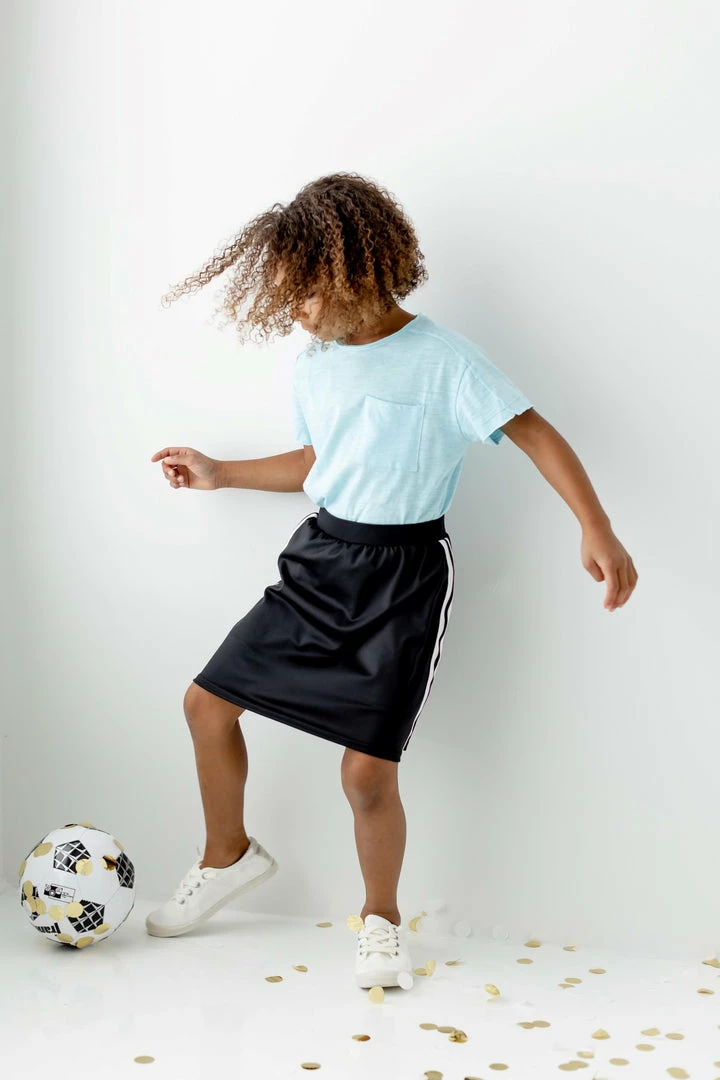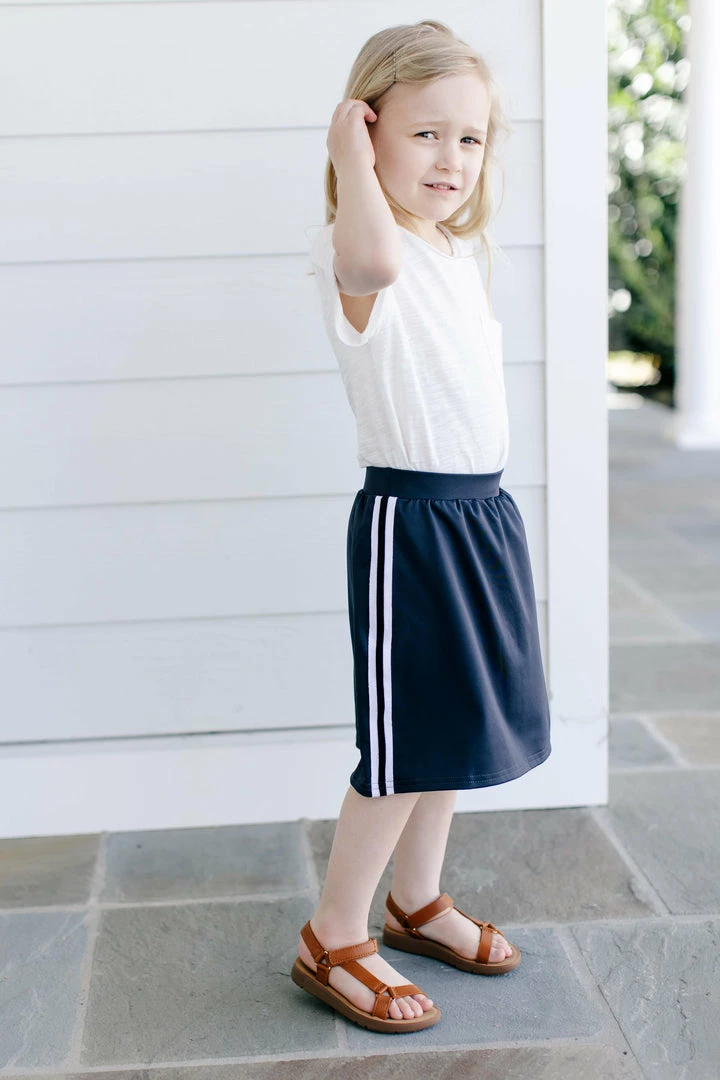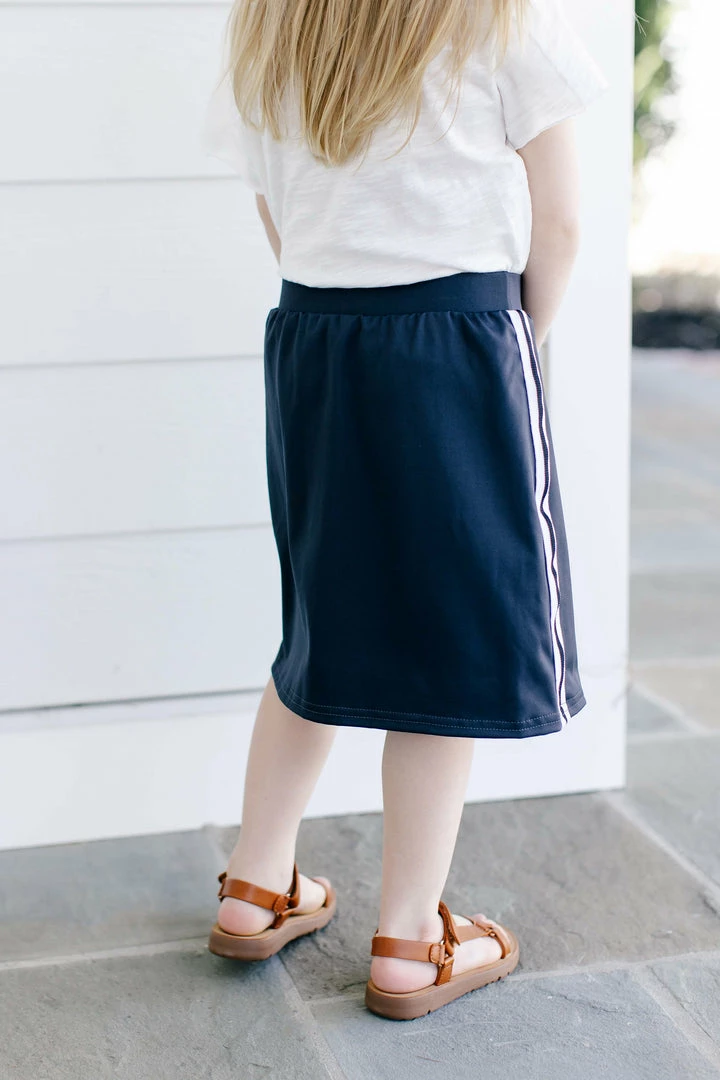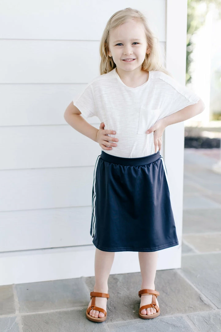 Designed with your active little girl in mind, these high quality skorts provide modesty while allowing even the most active girl to participate in any of her favorite sports. These durable skorts have stood the test of time and have had our customers coming back for more! This skort is available in navy blue without the stripe down the side which makes it a great option for school uniforms.