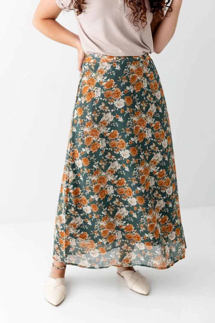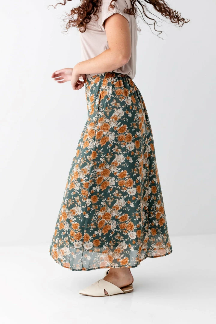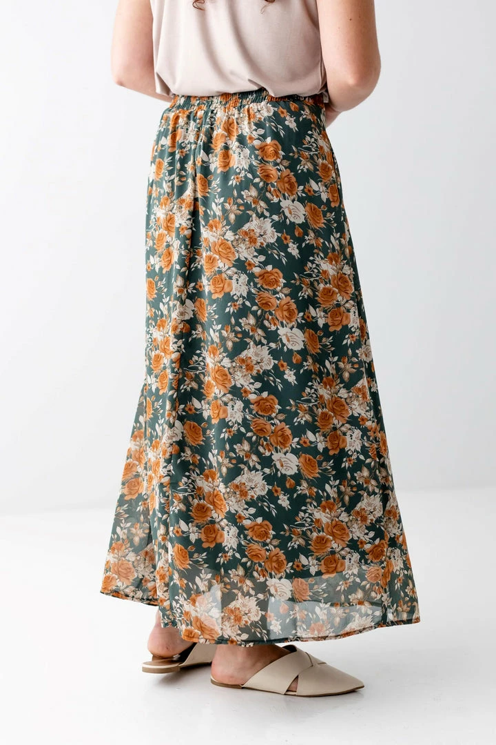 Feminine style meets retro floral in the best way with the Jolie Skirt! A high waisted fit creates a flattering silhouette while maxi length creates a lovely, lightweight movement as you go throughout your day. A smocked waistband in the back ensures a secure fit while full lining requires no slip! Pair the Jolie with an off white top and sandals for late summer, or with a knit sweater and mules in the fall!