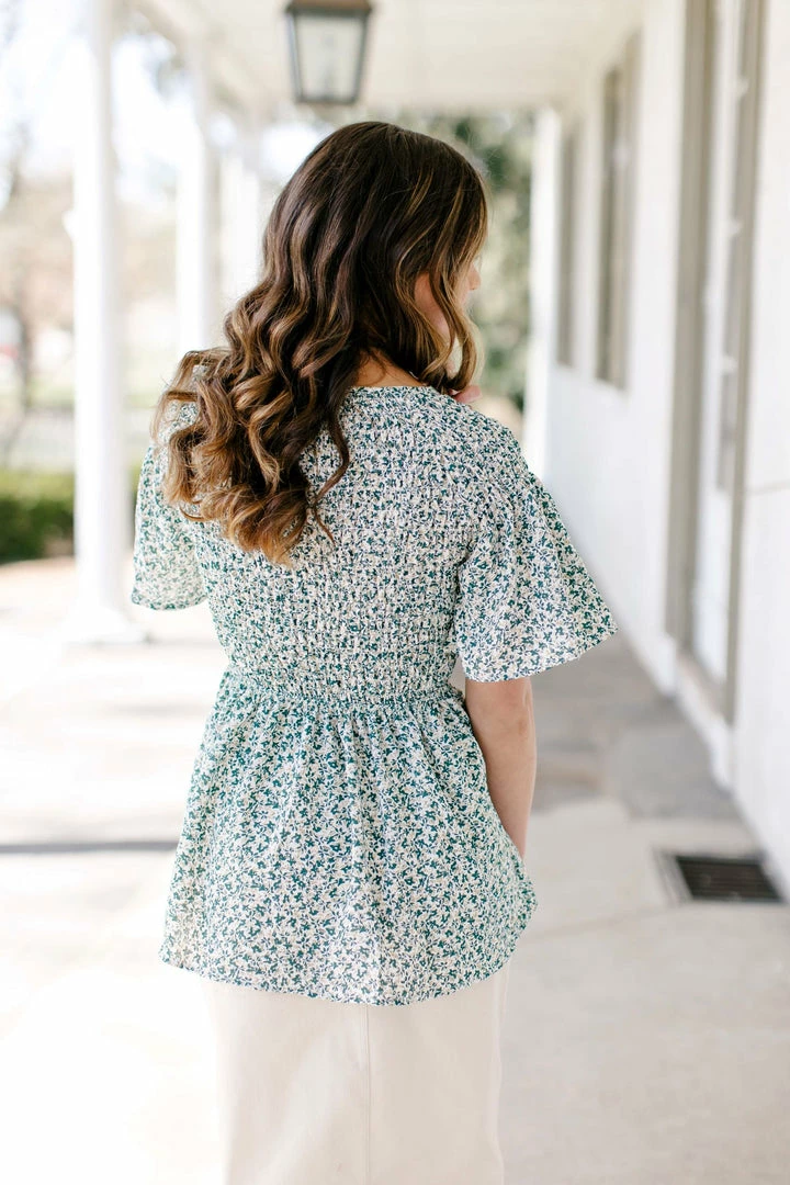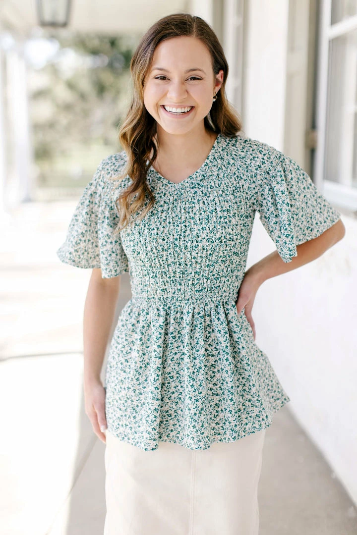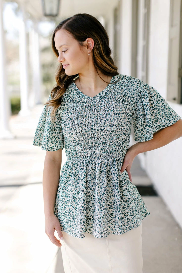 Unique and fresh, the Rachel Top is the definition of summer fun! This sweet top features a v-neckline, a smocked bodice and flutter sleeves for days in the sun. The Rachel is a must for days when you want a feminine look, and perfectly pairs with any skirt for elegant style!