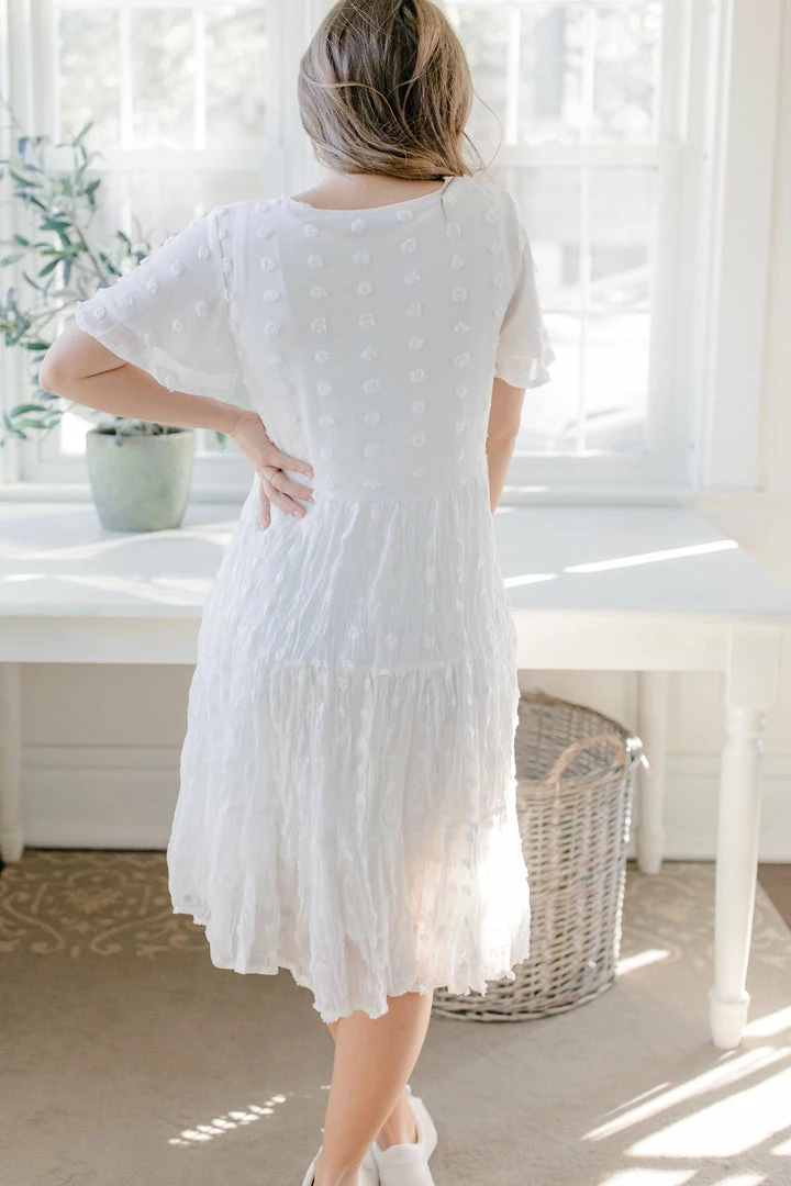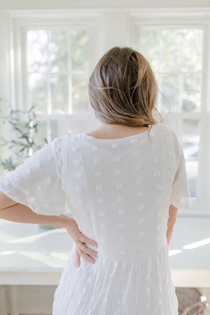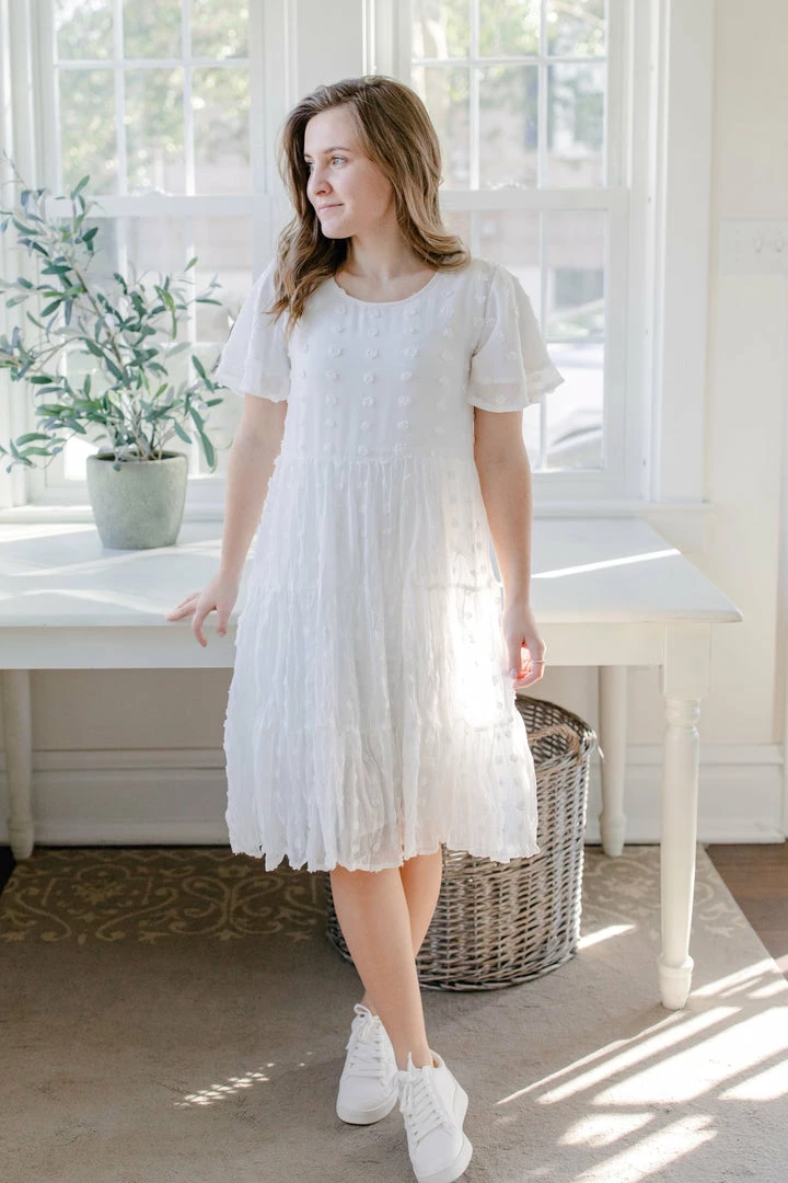 Whether you’re planning a photoshoot, headed to your baby shower, or taking a vacation, the Selah Dress is a perfect choice for the occasion! Featuring a flowy, tiered skirt and short, flutter-style sleeves, this dress is sure to add an feminine touch to your look. Plus, the lightweight material helps keep you feeling cool and confident no matter where you go. Dress this flutter short-sleeve tiered dress up with ankle boots and a fun jacket for a casual-chic vibe that will carry you through your day in style!