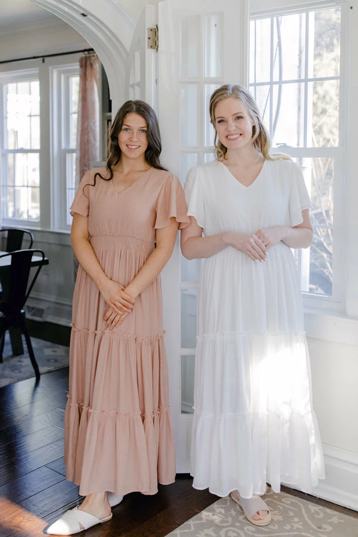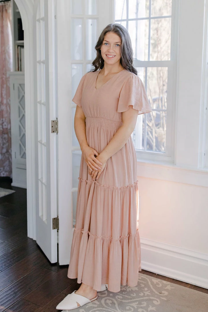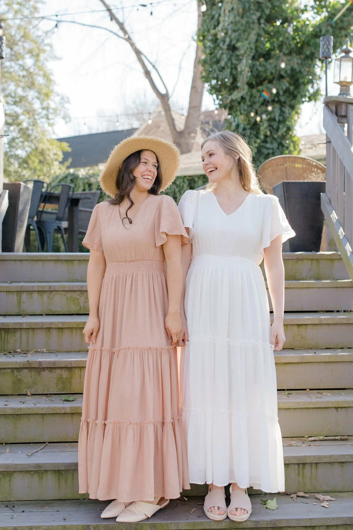 The Valorie Maxi Dress was made for warm days in the sun! This long, tiered dress is cut from lightweight fabric and is fully lined to let you move through the day in breathable all-day comfort. The pullover style features a smocked waist, flutter sleeves and a v-neckline. The perfect modest dress for Easter Sunday, a photoshoot, or summer soiree! Pair it with slide sandals or wedge heels and complete your look with a woven bag and stylish shades when out and about!