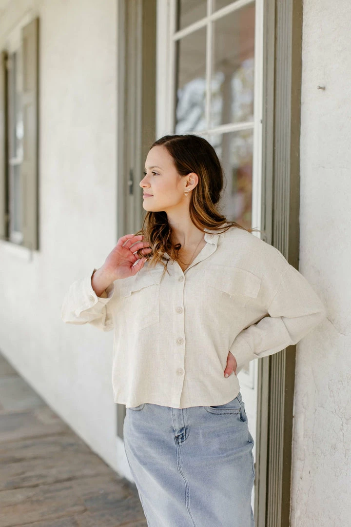 For chilly spring days and cool summer nights, the ‘Ainsley’ Jacket will provide a layer of warmth that can be worn season after season! The light linen blend makes it the perfect transitional piece to blend into your warm weather capsule wardrobe. Can be worn as an outer layer or buttoned and tucked into your favorite skirt! Pair it with a basic tee and a vintage denim skirt for an on trend look.Â