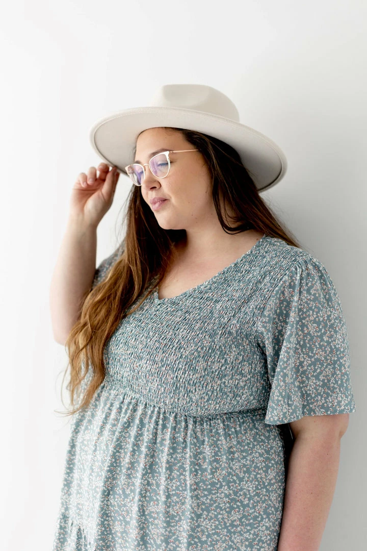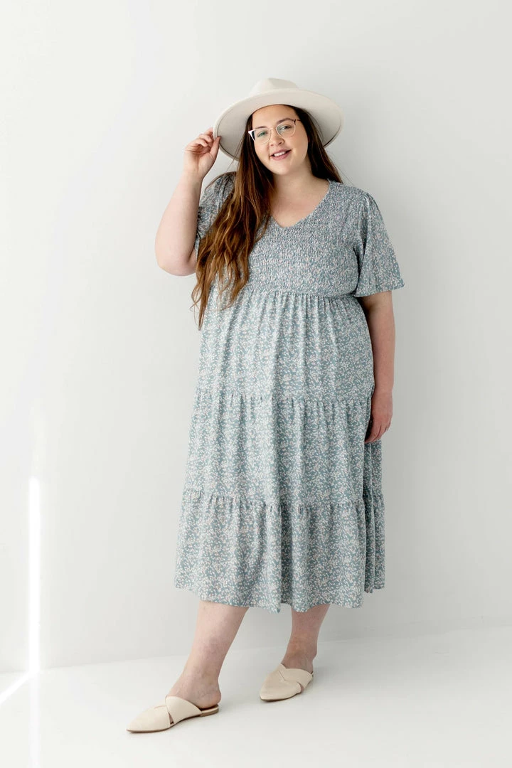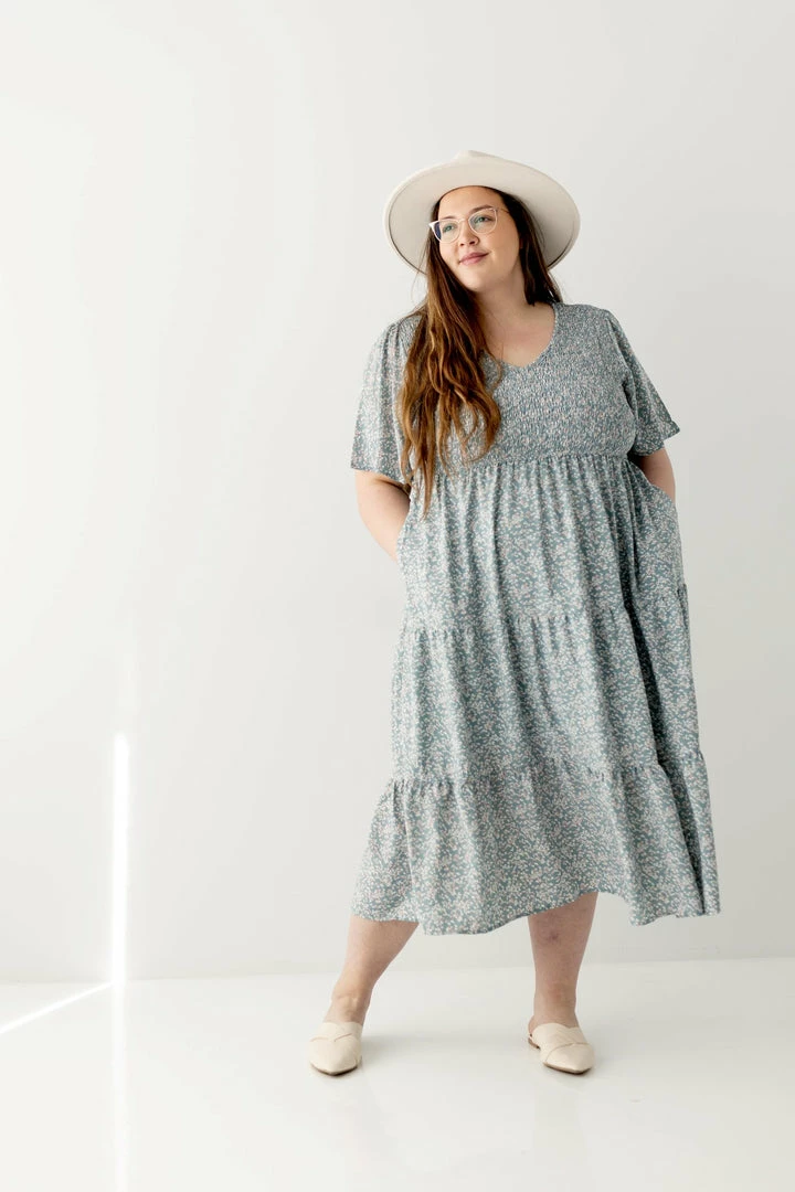 Figure flattering AND modest, the Tasha dress does not disappoint! The smocked bodice emphasizes a feminine silhouette, while short flutter sleeves and a v-neckline set a spring mood. The tiered midi skirt moves with you as you go throughout your day. Pair with block heels or white sneakers for any occasion!