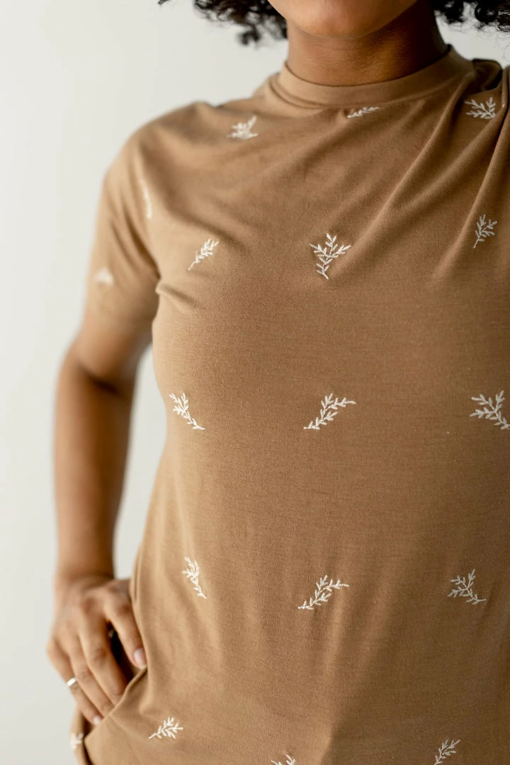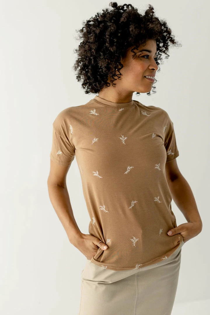 This simple tee with a dainty embroidered leaf details adds a boho vibe to any outfit! Pair with distressed denim, under an overall dress, or with a denim jacket to make a simple statement. The possibilities are endless!