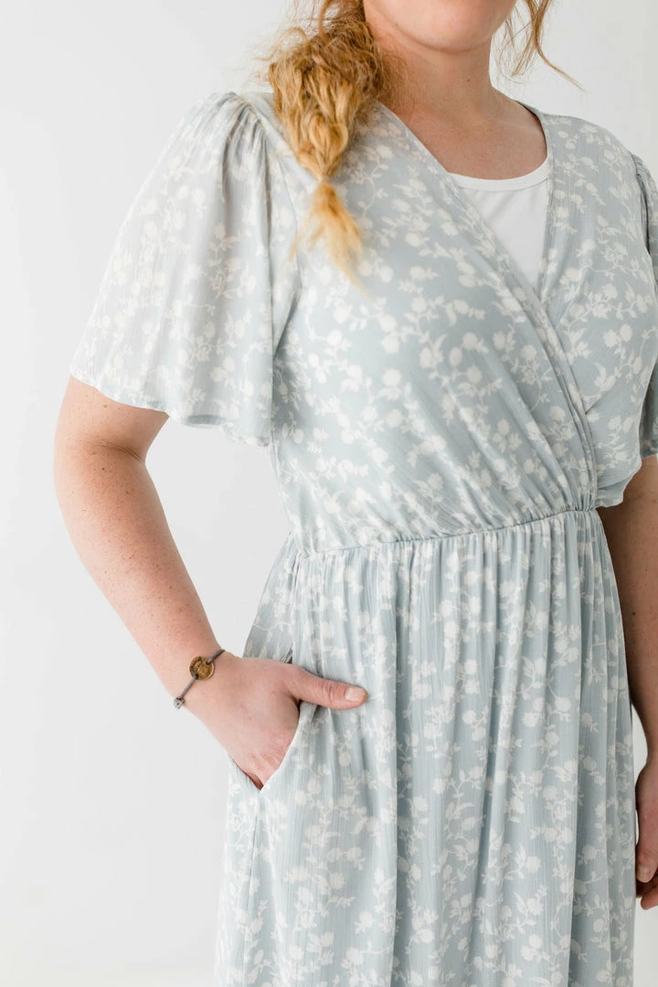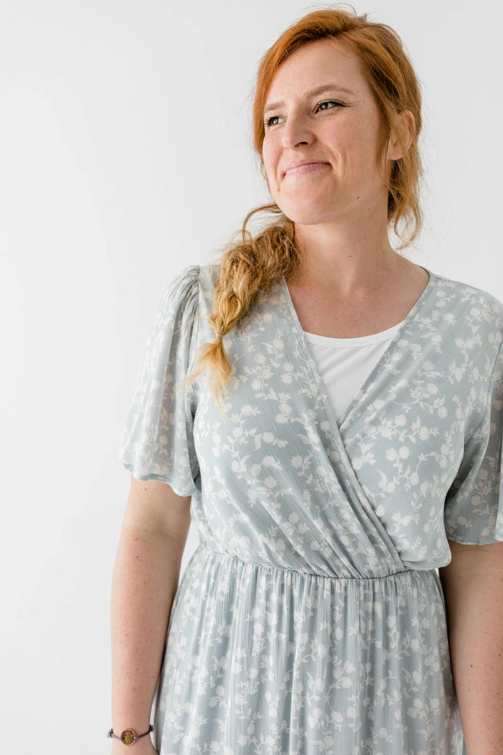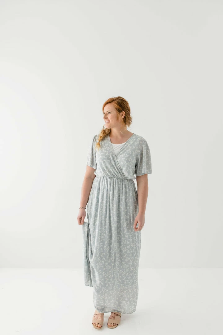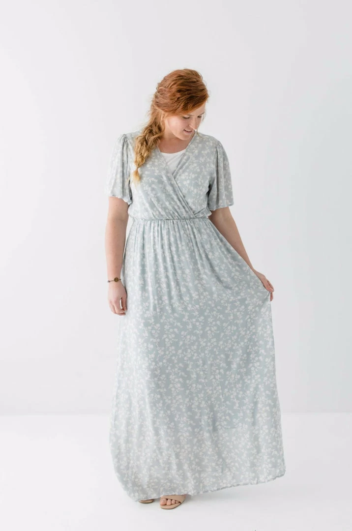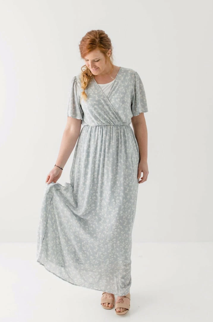A modest maxi dress for so many occasions! The Hyacinth Floral Maxi Dress is perfect for Sunday morning, date night, or simply everyday sophistication. Flutter sleeves and a crossover neckline are endlessly flattering, and the maxi skirt, with it’s relaxed flowing fit, offers ultimate mobility. Style with a pair of block heels and a leather bag and you are ready for any event! The Hyacinth is also maternity and nursing friendly!