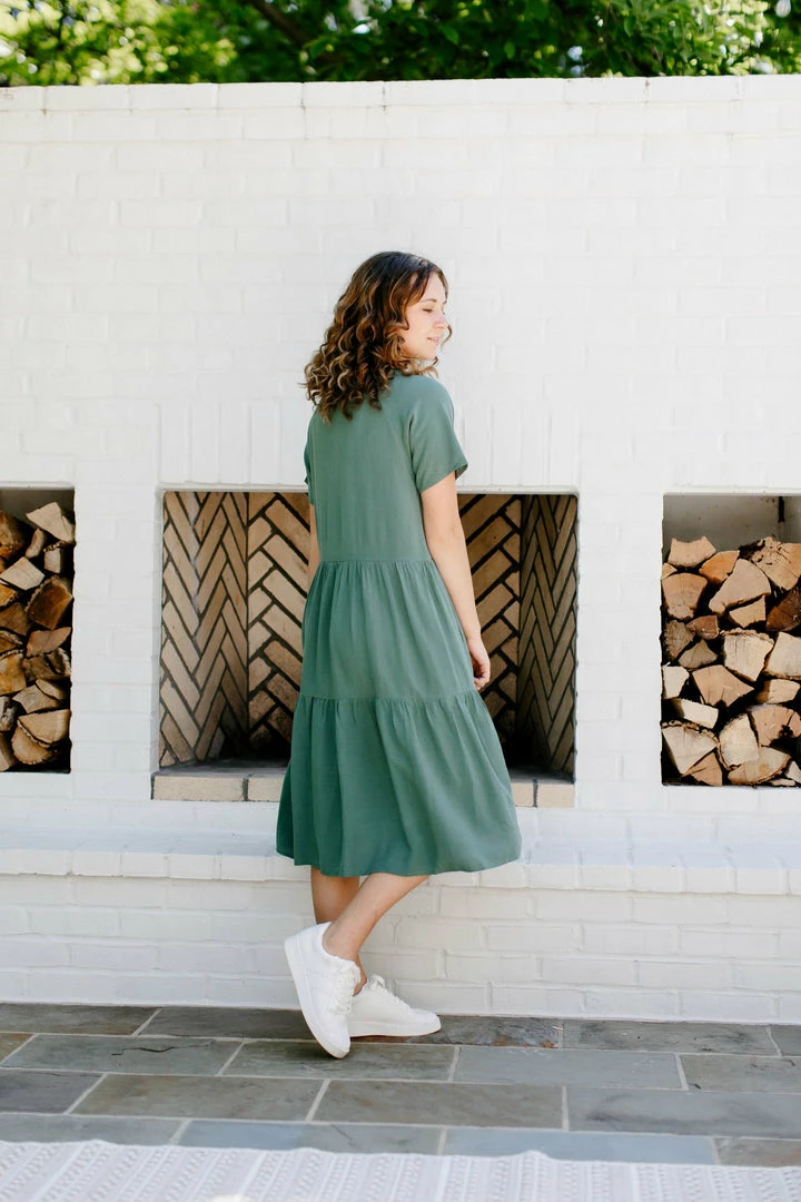 Add versatile style to your closet with the Saylor Dress! This midi dress is made from a linen blend for a soft and breathable design — making it perfect for warmer weather. A relaxed fit and tiered silhouette allow for comfortable wear while you go from Sunday morning to vacay. Slip into your favorite pair of sneakers for everyday style, or amp it up with block sandals for an elevated look!