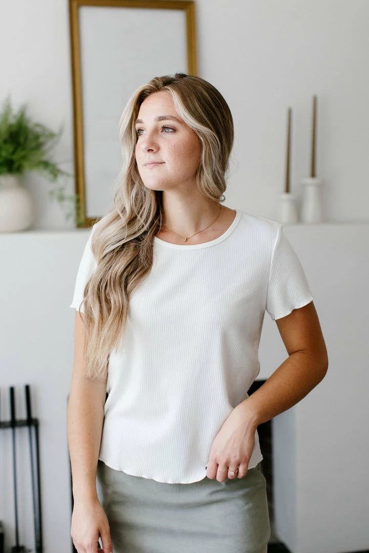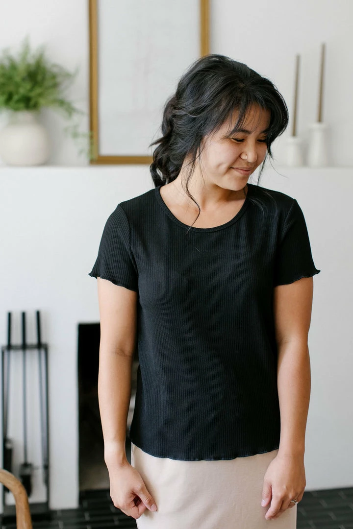 Give your layering top collection a stylish update with the Sol Top! This short-sleeve top features lettuce-edge detailing, soft stretch and easy pullover style. Truly a closet staple, the Sol Top is the perfect base to all your summer looks! Pair with any skirt for an effortlessly chic look, and layer under a cardigan for a cozy outfit when the weather cools down!
