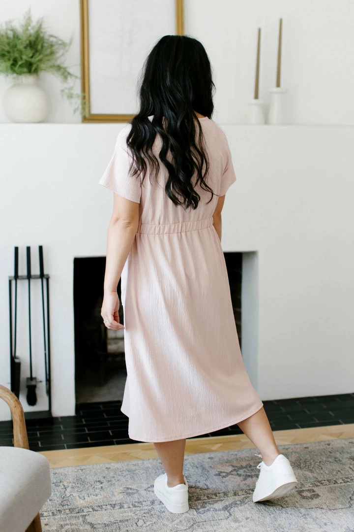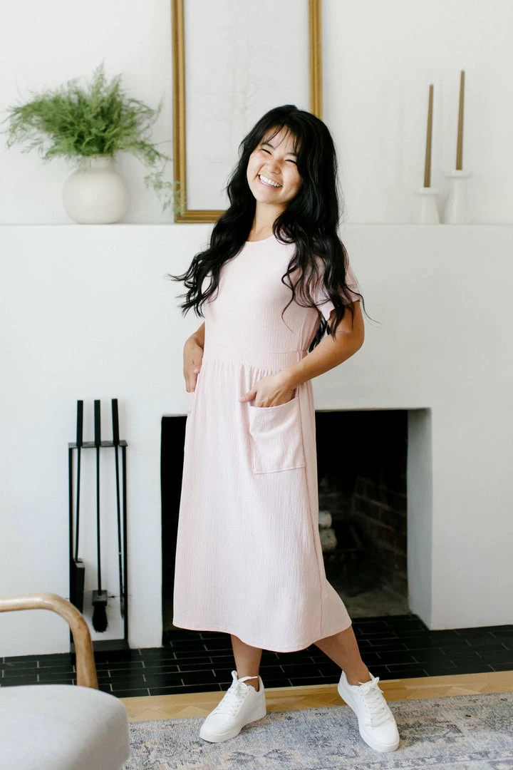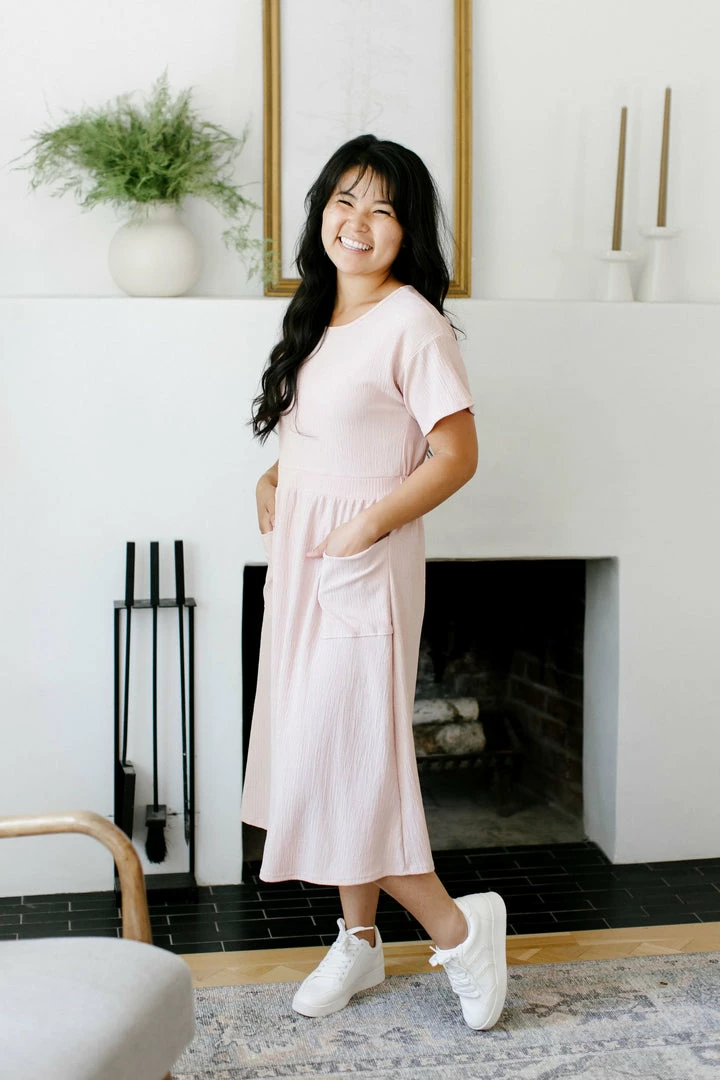 Give your closet a comfy update with the Larkin Midi Dress! This comfortable, simple dress made from soft, stretchy fabric is sure to become a warm-weather favorite. Styled with a simple crewneck, pockets and a midi-length cut, it’s ideal to wear for casual outings. Pair this dress with slip-on flats, casual sneaks or wedge heel sandals to create your own unique personal style!