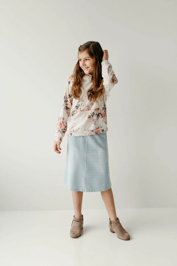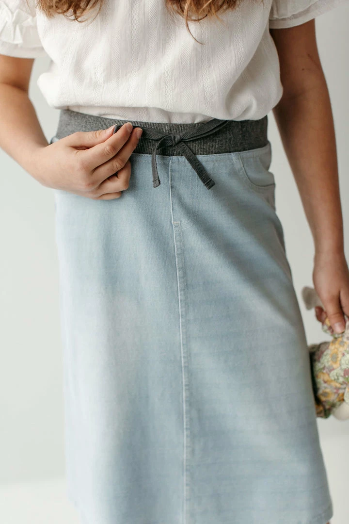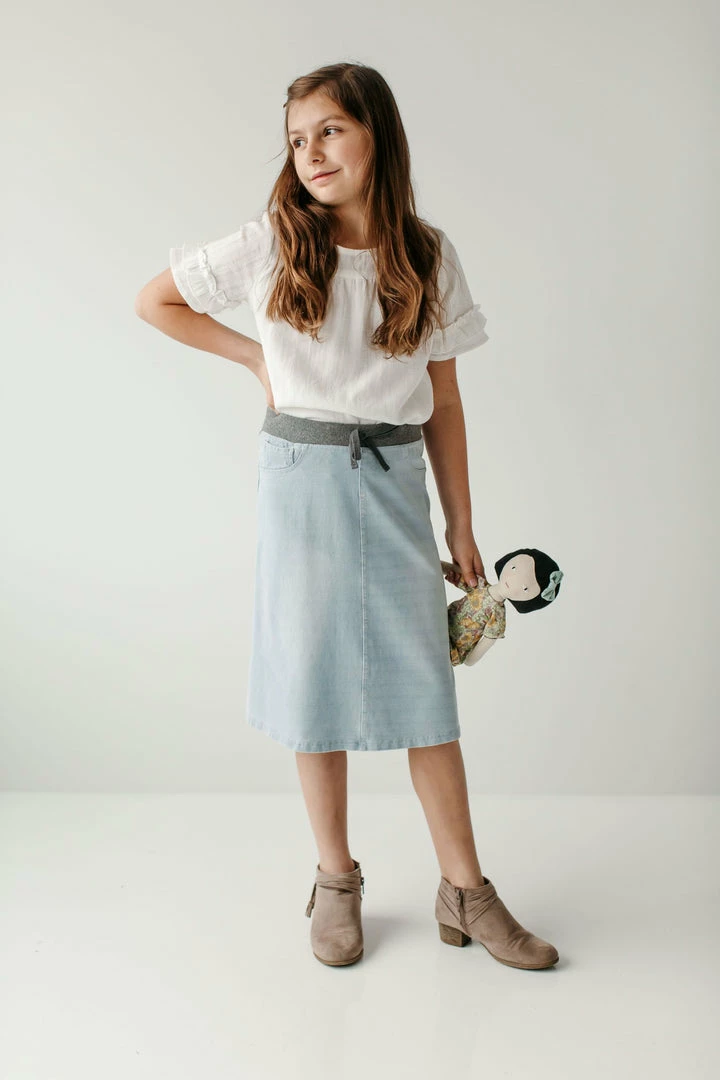 Love the feel of jeggings but the look of a skirt? The ‘Ava’ knit denim skirt is a favorite among the little ladies! With easy pull-on style and a comfy waistband the ‘Ava’ is perfect for the classroom, the playground, and everyday adventures! Â