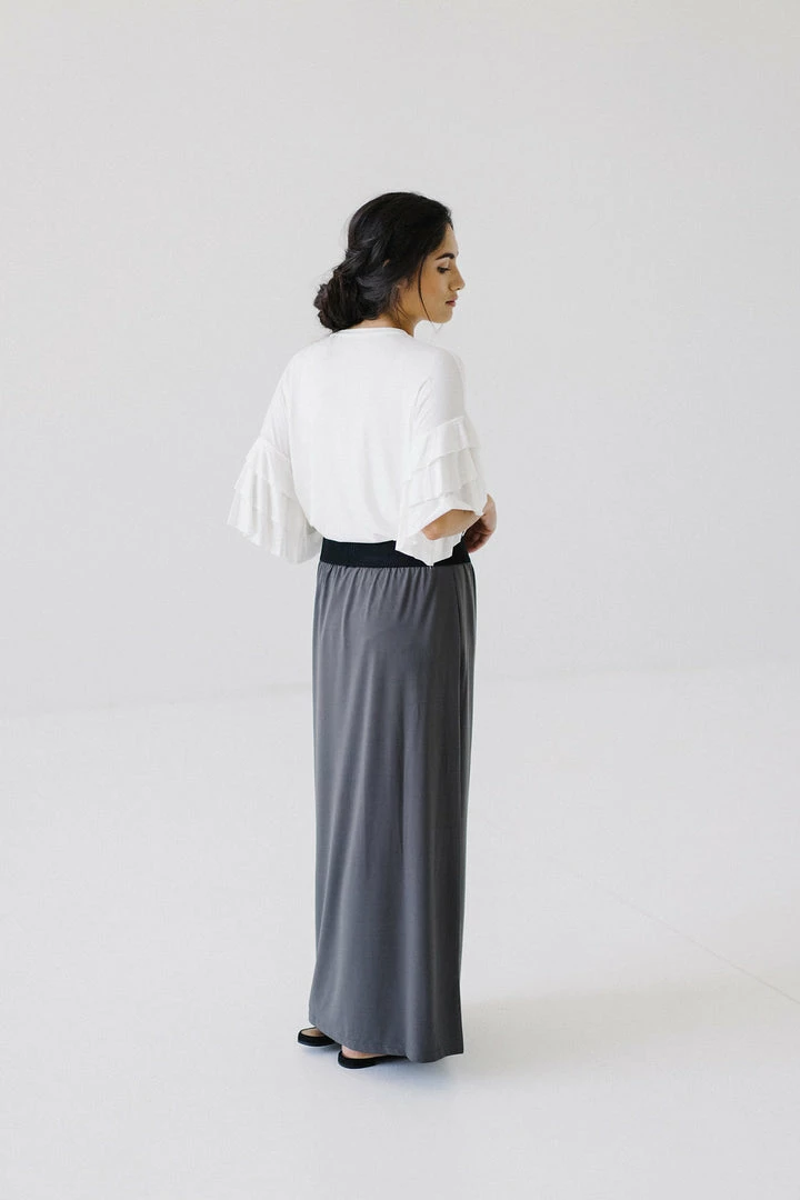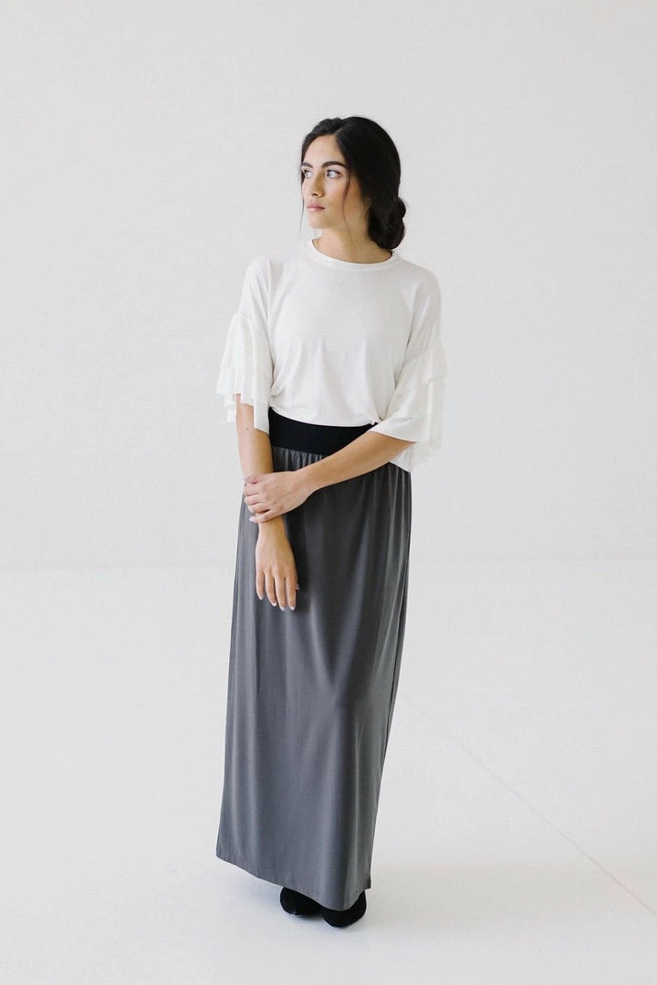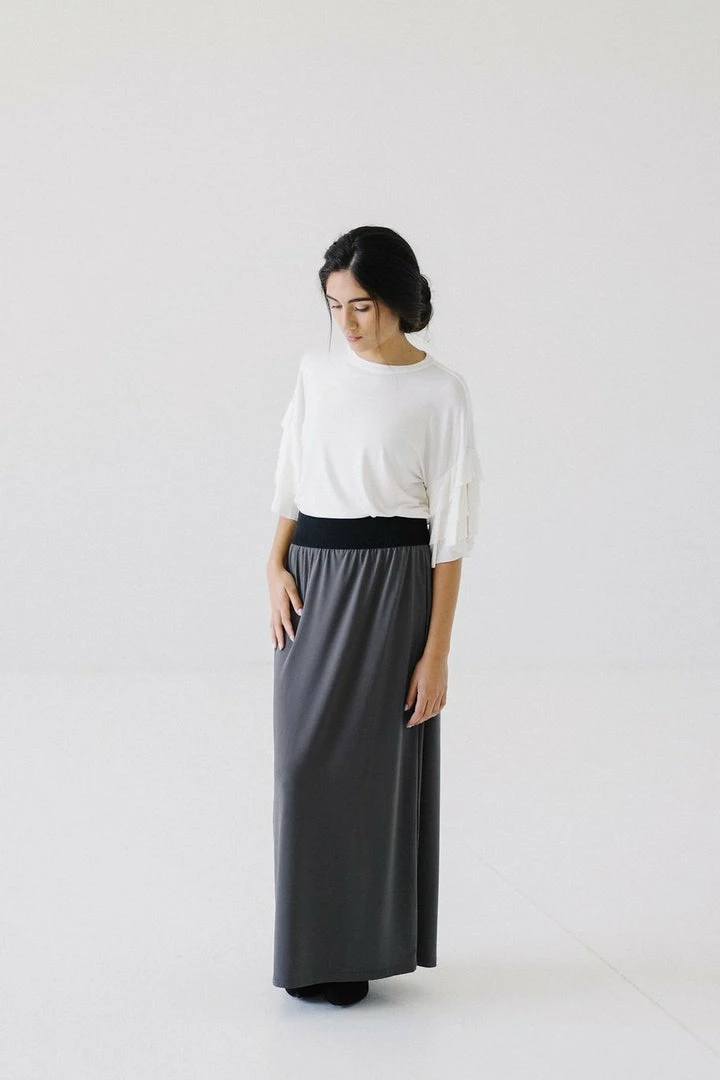 Another one of our exclusive designs, the ‘Claire’ features a wide elastic waistband and gathers to ensure a modest and flattering fit. The ‘Claire’ can be worn at your natural waist for a classic, elegant effect or around the hips for a casual, comfortable option.