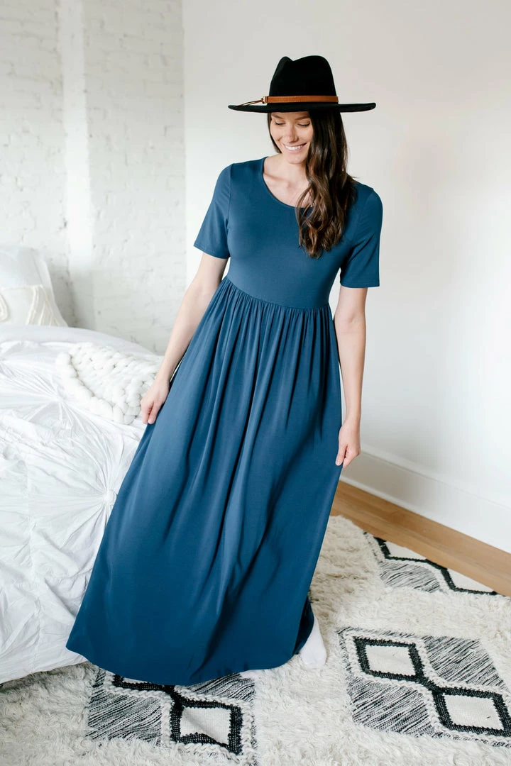 There are few pieces more valuable to a modest wardrobe than a comfortable maxi dress! The Abigail is a slimming maxi dress with a softly gathered waist for a modest and feminine fit. Made from a premium eco-friendly fabric blend, you won’t have to trade comfort for style. Ready to wear as is or add a feminine neck scarf or duster vest if you’re feeling fancy!