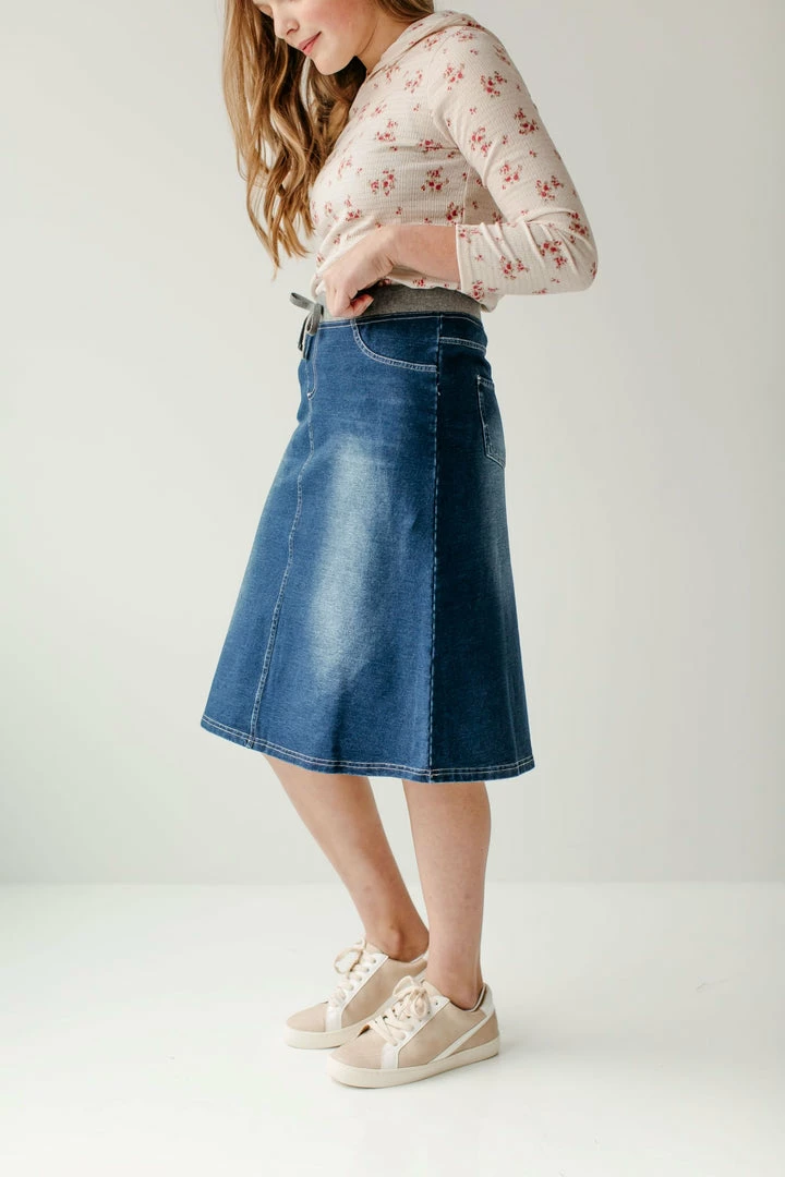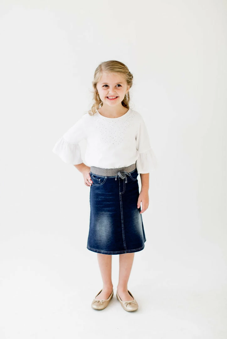 Love the feel of jeggings but the look of a skirt? The ‘Ava’ knit denim skirt is a favorite among the little ladies! With easy pull-on style and a comfy waistband the ‘Ava’ is perfect for the classroom, the playground, and everyday adventures.