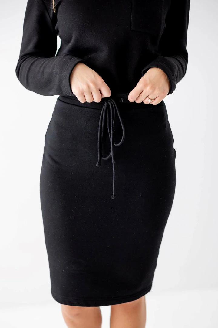 All the cozy feels of sweats in skirt form! The Zion will keep you comfortable whether you’re relaxing at home or meeting up with friends. Featuring a buttery soft lining and an adjustable drawstring waist so you can find the perfect fit – this is a skirt you can hang out in all winter long! Pair with sneakers or chunky ankle boots and the matching top.  Exclusively designed by us for you!Â